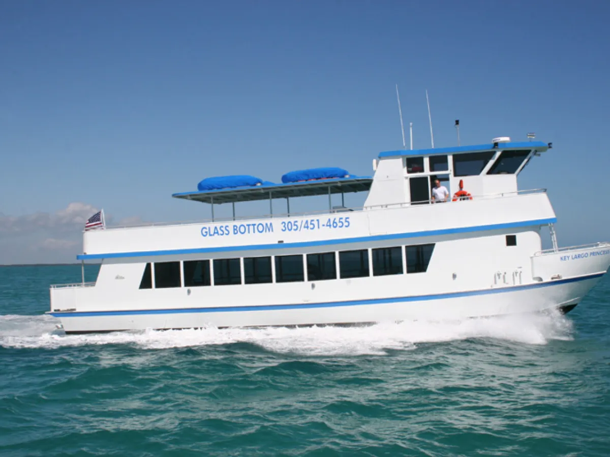 The Key Largo Princess is a luxurious 75-foot, 140-passenger, glass bottom aluminum motor yacht. From our sun deck, you will have a panoramic offshore view of the Florida Keys and can view the ever-changing colors of the Atlantic Ocean.